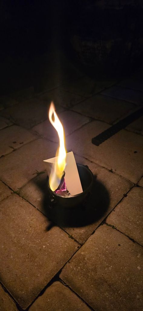 - Safely burn the letter in a fireproof dish, cauldron, or candle flame.